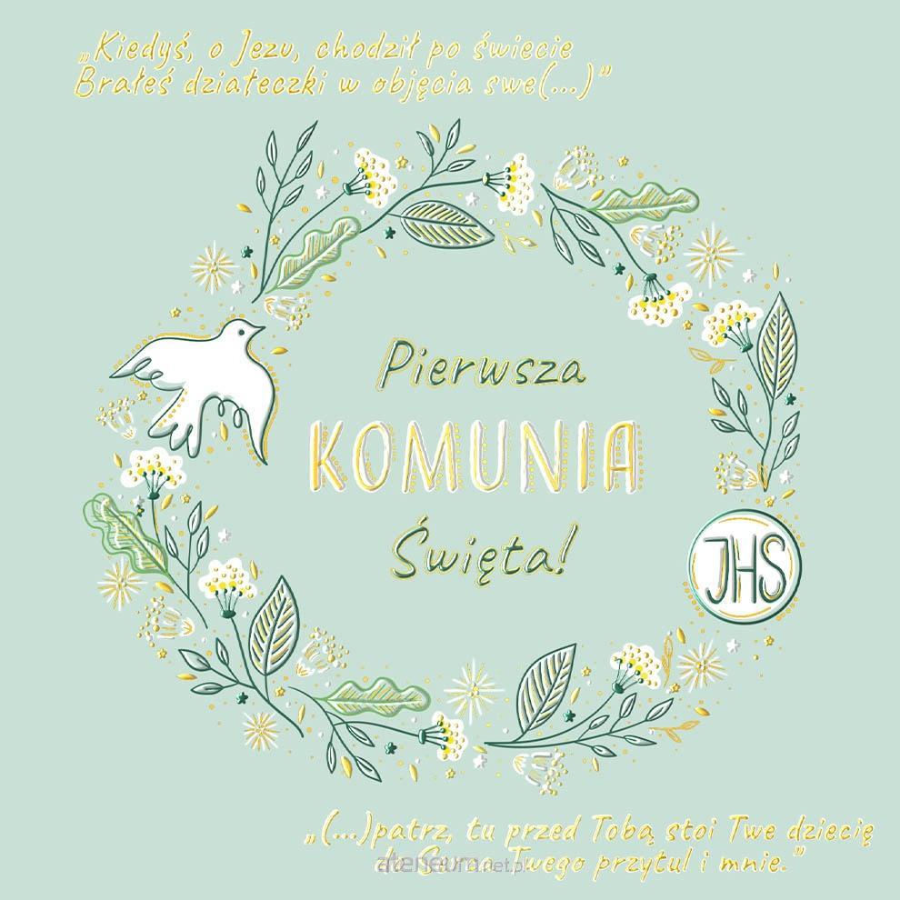 Karnet A5 Komunia Złoty gołąb