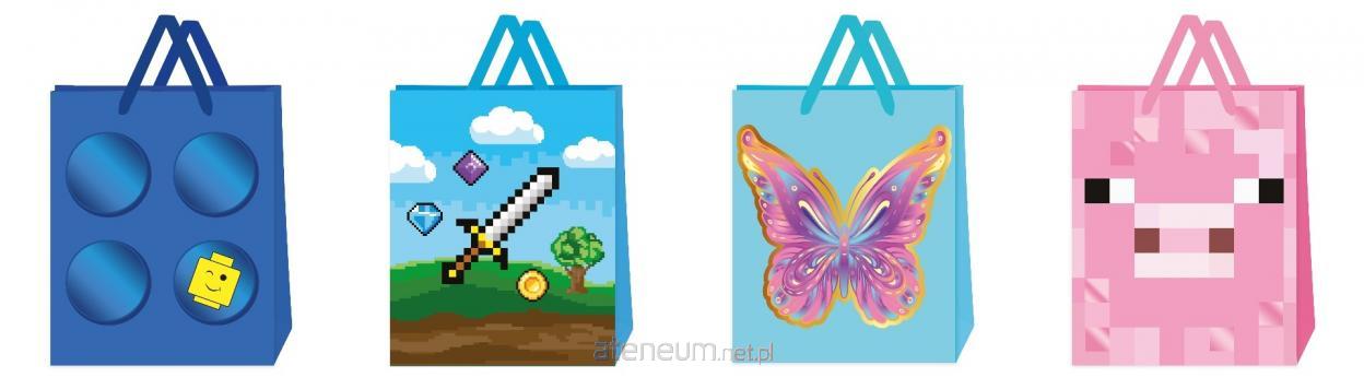 Duża torebka ozdobna w dziecięcych, kolorowych wzorach to idealne opakowanie na prezent dla najmłodszych. Doskonale sprawdzi się do zapakowania drobnych upominków.