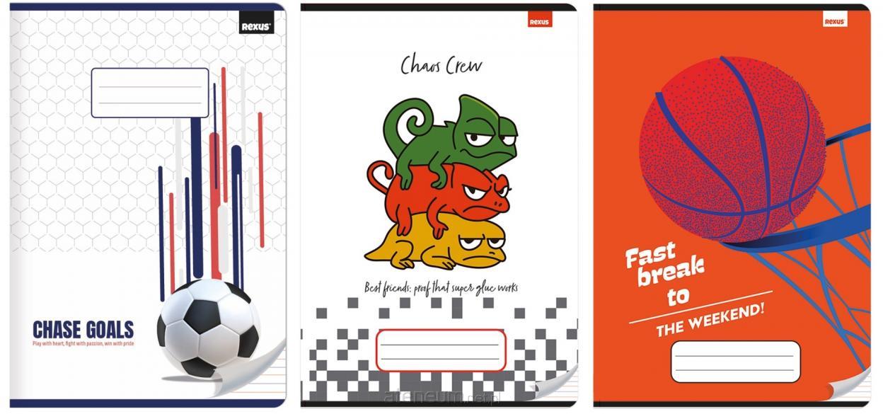 Dodatkowo, środek zeszytu został zadrukowany trzylinią w różnych kolorach, co ułatwia organizację notatek oraz czytelność zapisanych treści.
