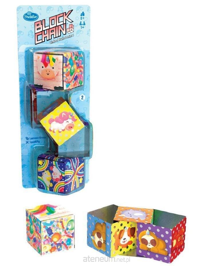 Kolorowa, pełna fantazji wersja łamigłówki ThinkFun Block Chain z motywem jednorożców i uroczych zwierzątek to doskonałe połączenie kreatywnej zabawy i treningu umysłu. Połączone kostki tworzą elastyczny łańcuch, który można rozkładać, obracać i ponownie składać, aby dopasować właściwe obrazy na wszystkich ściankach.