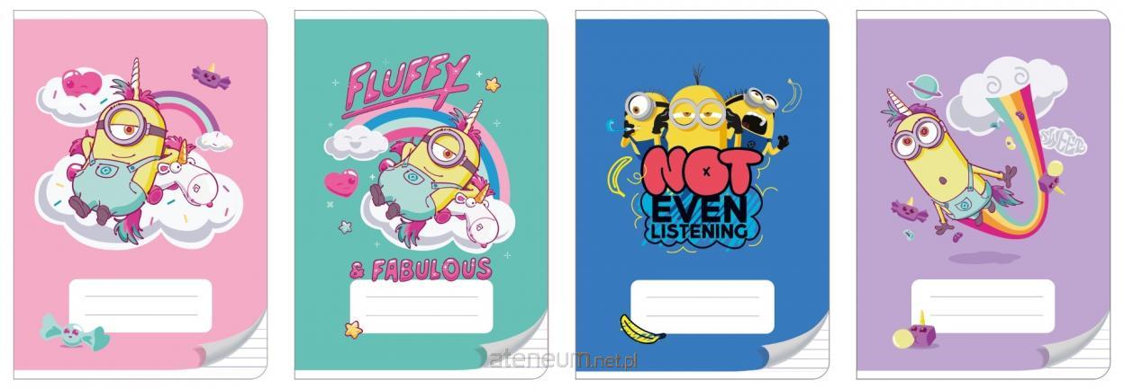 Zeszyt A5 z zadrukiem w linię, który idealnie sprawdzi się jako niezbędne narzędzie w szkole.\nZestawienie kompaktowego formatu A5 z liczbą kartek wynoszącą 32 zapewnia odpowiednią przestrzeń do zapisywania notatek, wykonywania szkiców czy rozwiązywania zadań.\nZeszyt wykonany został z wysokiej jakości papieru o gramaturze 70g, co gwarantuje trwałość i wygodę pisania.\nOkładka zeszytu została specjalnie pokryta lakierem UV, który nie tylko nadaje mu elegancki wygląd, ale także chroni przed zabrudzeniami i uszkodzeniami.\n Dodatkowym atutem są zaokrąglone rogi, które zapewniają komfort podczas użytkowania.\nOprawa zeszytu jest miękka, co daje możliwość swobodnego przeglądania kartek oraz składania zeszytu w dowolny sposób. Dzięki temu zeszyt idealnie dopasuje się do każdej potrzeby. idealny do szkolnych notatek i zadań\n praktyczny i wygodny w użytkowaniu\n wzór MINIONKI\n format A5, 32 kartki w linię\n grubość kartek 70g\n liniatura niebieska, margines czerwony\n okładka miękka\n uszlachetnienie: lakier UV połyskowy\n wewnętrzna okładka bez nadruku\n etykieta do wpisania danych na okładce zewnętrznej\n trwałe materiały i solidne wykonanie\n zaokrąglone rogi