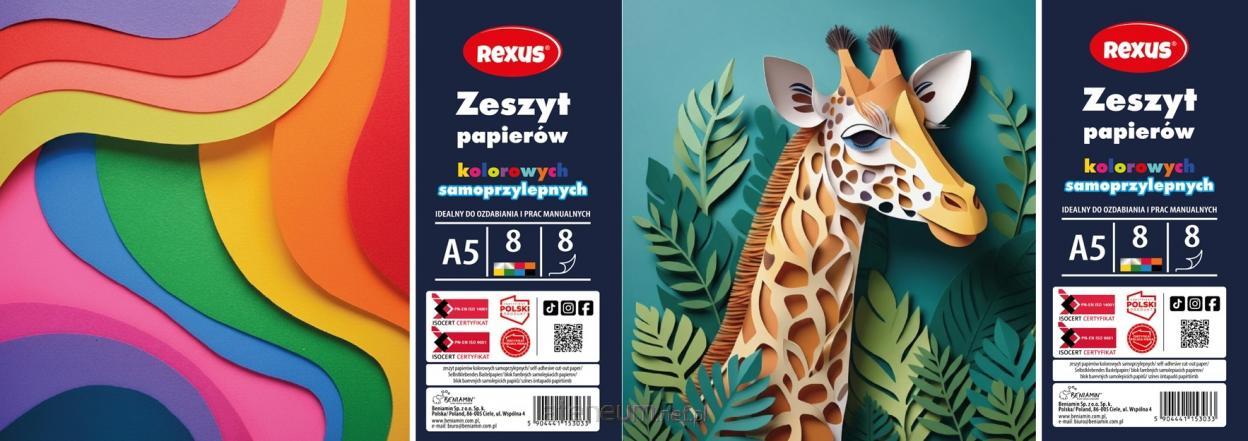 Wycinanka dla dzieci do prac kreatywnych dla przedszkolaków i młodzieży szkolnej. Grubość i nabłyszczane kolory papierów kolorowych zadowoli nawet najbardziej wybredne dziecko i sprawi mu wiele radości w tworzeniu nowych prac plastycznych. Samoprzylepna kartka sprawia, że nie pobrudzimy klejem siebie i swojego projektu.\n Format A5, 8 arkuszy, Papier połyskujący powlekany jednostronny\n Idealny do ozdabiania, prac manualnych\n 8 kolorów w tym złoty i srebrny\nWycinanka idealna do:\n scrapbookingu,\n prac plastycznych,\n projektów wykonywanych z dziećmi,\n kolaży,\n dekoracji pudełek,\n projektów diy.\nCechy wycinanki:\n zeszyt zawiera 8 arkuszy,\n wymiar arkusza: A5,\n kartki z samoprzylepnym klejem\n można go ciąć nożyczkami, wycinać dziurkaczami i za pomocą wykrojników,\n kolory: srebrny, złoty, czarny, niebieski, czerwony, żółty, pomarańczowy, zielony,\n idealny do tworzenia zdobień w różnych technikach rękodzielniczych.