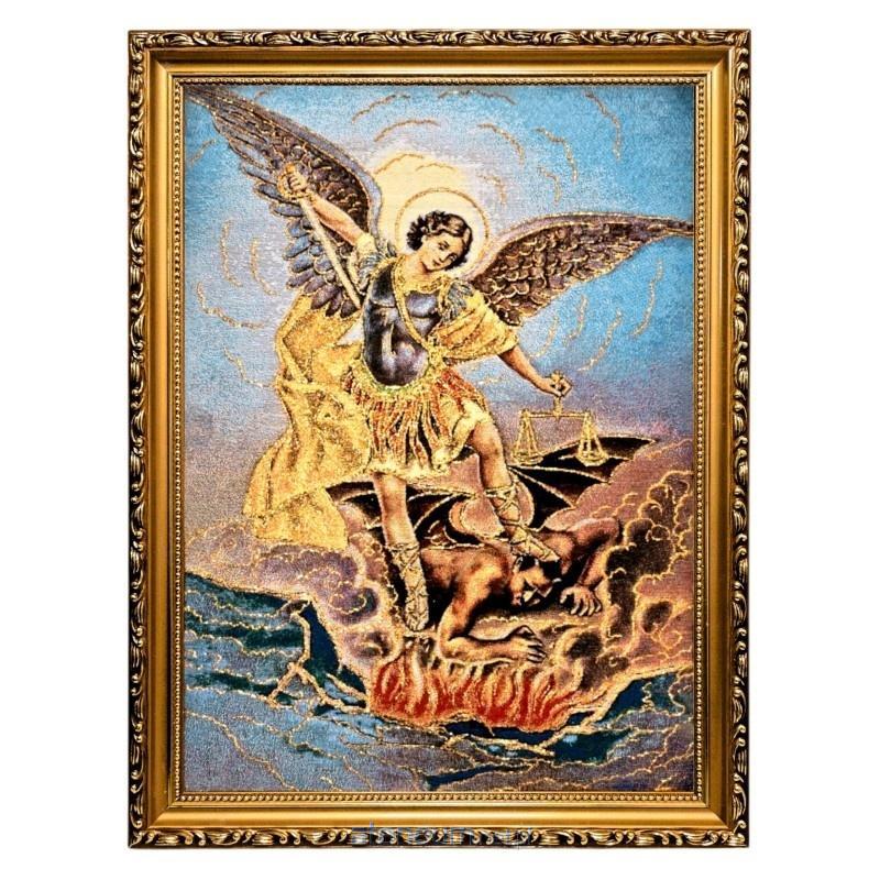 Haftowany Obraz Święty Michał Archanioł w Złotej Ramie - Złote Nici, 42x32 cm