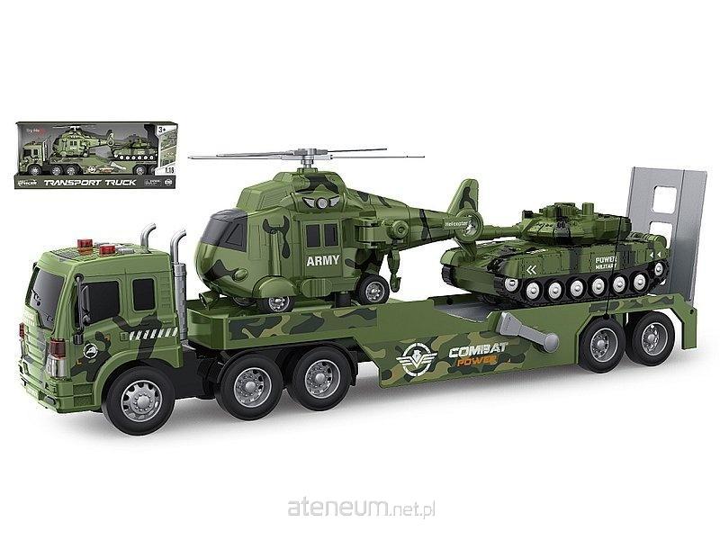 auto wojskowe z lawetą, śmigłowcem i czołgiem, 1:16, światło, dźwięk; 52x11,5x21cm, W/B