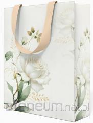 Torebka ozdobna matowa 18x23x10cm Białe Kwiaty