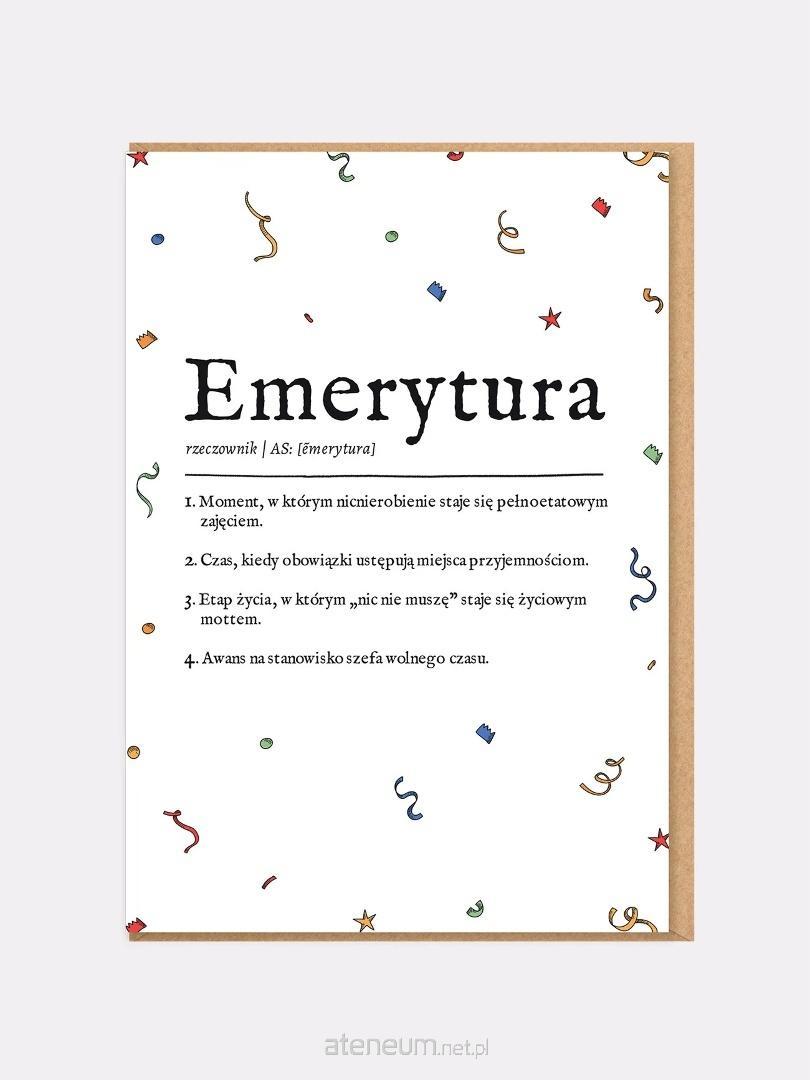 "Emerytura" - rzeczownik. Moment, w którym nicnierobienie staje się pełnoetatowym zajęciem, obowiązki ustępują miejsca przyjemnościom, a "nic nie muszę" brzmi jak najlepsze życiowe motto. Ta humorystyczna kartka na emeryturęw formie definicji to lekka, zabawna i nowoczesna propozycja na zakończenie pracy zawodowej.