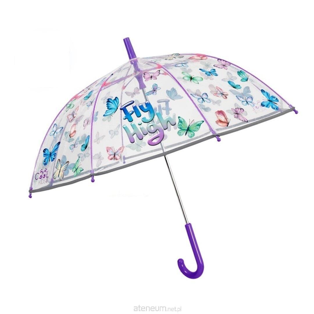 Przezroczysta parasolka dziecięca z kolorowym motywem motyli i napisem "Fly High" to praktyczny i jednocześnie bardzo efektowny dodatek na deszczowe dni. Transparentna czasza pozwala dziecku swobodnie obserwować otoczenie nawet wtedy, gdy parasol osłania twarz, co zwiększa komfort i bezpieczeństwo podczas spacerów. Barwne motyle oraz dekoracyjny napis nadają parasolce lekkości i radosnego charakteru.