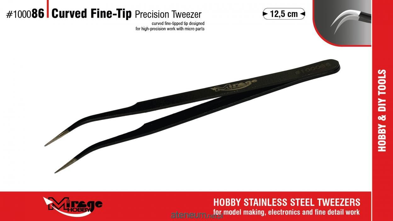 Seria Mirage Hobby Precision Tweezers to seria wysokiej jakości pęset wykonanych ze stali nierdzewnej, zaprojektowanych do precyzyjnej pracy z drobnymi i delikatnymi elementami. Pęsety zapewniają doskonałą kontrolę, stabilny chwyt oraz komfort pracy podczas montażu, malowania i pozycjonowania detali. Każdy model w serii został opracowany z myślą o konkretnym zastosowaniu - od bardzo drobnych elementów, przez części fototrawione, aż po pracę w trudno dostępnych miejscach. Cechy pęset Mirage Hobby Precision Tweezers: stal nierdzewna - trwałość i odporność na korozję precyzyjnie spasowane końcówki wysoka kontrola chwytu ergonomiczny kształt przeznaczone do modelarstwa, elektroniki i prac precyzyjnych. MIRAGE 100086 PĘSETA CURVED FINE-TIP PRECISION TWEEZER 12,5cm to Pęseta zakrzywiona z cienkimi końcówkami. Zapewnia maksymalną precyzję przy pracy z mikroelementami pod kątem. bardzo drobne detale praca pod kątem precyzyjne modelarstwo i elektronika