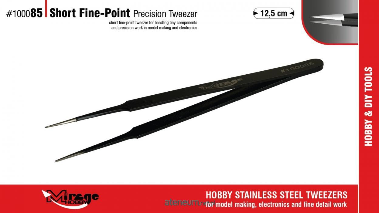 Seria Mirage Hobby Precision Tweezers to seria wysokiej jakości pęset wykonanych ze stali nierdzewnej, zaprojektowanych do precyzyjnej pracy z drobnymi i delikatnymi elementami. Pęsety zapewniają doskonałą kontrolę, stabilny chwyt oraz komfort pracy podczas montażu, malowania i pozycjonowania detali. Każdy model w serii został opracowany z myślą o konkretnym zastosowaniu - od bardzo drobnych elementów, przez części fototrawione, aż po pracę w trudno dostępnych miejscach. Cechy pęset Mirage Hobby Precision Tweezers: stal nierdzewna - trwałość i odporność na korozję precyzyjnie spasowane końcówki wysoka kontrola chwytu ergonomiczny kształt przeznaczone do modelarstwa, elektroniki i prac precyzyjnych. MIRAGE 100085 PĘSETA SHORT FINE-POINT PRECISION TWEEZER 12,5cm to Pęseta krótka z bardzo cienkimi końcówkami. Przeznaczona do pracy z bardzo małymi elementami i mikrodetalami. mikrodrobne części elementy fototrawione precyzyjne pozycjonowanie