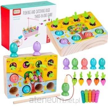 Gra magnetyczna wprowadza malucha w świat wspaniałych przygód rybackich i ogrodowych bez wychodzenia z domu.\nTa wyjątkowa gra nie tylko dostarcza dzieciom wspaniałej zabawy, ale także rozwija wiele przydatnych umiejętności. Zasady gry są proste i intuicyjne, dzięki czemu dziecko będzie czerpać radość i edukację jednocześnie. \nGra Magnetyczna \"Łowienie Rybek, Insektów i Marchewek\" to interaktywna zabawka, która zapewnia rozwój umiejętności motorycznych, koordynacji ręka-oko oraz stymulację sensoryczną. \nDziecko używa magnetycznej wędki, aby wyciągnąć rybki i insekty z otworów w drewnianej podstawie. To ćwiczenie rozwija precyzję ruchów rąk oraz zdolności motoryczne. Kolorowe warzywa ukryte w otworach można wyjąć, chwytając je za filcowe listki.\nGra nie tylko dostarcza radości, ale także uczy poprzez zabawę. Dzieci mogą rozpoznawać różne kolory, kształty i wzory.\nZabawka rozwija umiejętności manualne, koncentrację i wyobraźnię, dzięki czemu będzie idealnym prezentem dla każdego malucha.\nWymiary opakowania: 16,5 x 12,5 x 5,5 cm