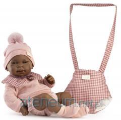 Realistycznie wyglądająca, winylowa dziewczynka z miękkim brzuszkiem posiada wyrzeźbione włoski oraz delikatnie malowane brwi, usta, paznokcie i fałdki. Clara od marki Antonio Juan ubrana jest w mięciutką, bawełnianą sukienkę w paseczki. Ręcznie szyty w Hiszpanii strój uzupełnia wiązana czapeczka, białe majteczki oraz skarpetki.