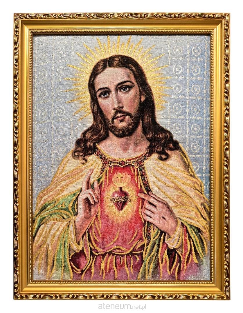 Zanurz się w tajemnicy Bożej miłości dzięki temu wyjątkowemu, haftowanemu obrazowi przedstawiającemu Najświętsze Serce Pana Jezusa. Jezus ukazany jest w pełnym majestatu i łagodności geście, wskazując dłonią na swoje gorejące Serce - symbol nieskończonego miłosierdzia, ofiary i oddania dla ludzkości. Ten poruszający wizerunek wnosi do każdego domu atmosferę pokoju, nadziei oraz przypomina o nieustannej obecności Chrystusa w codziennym życiu.