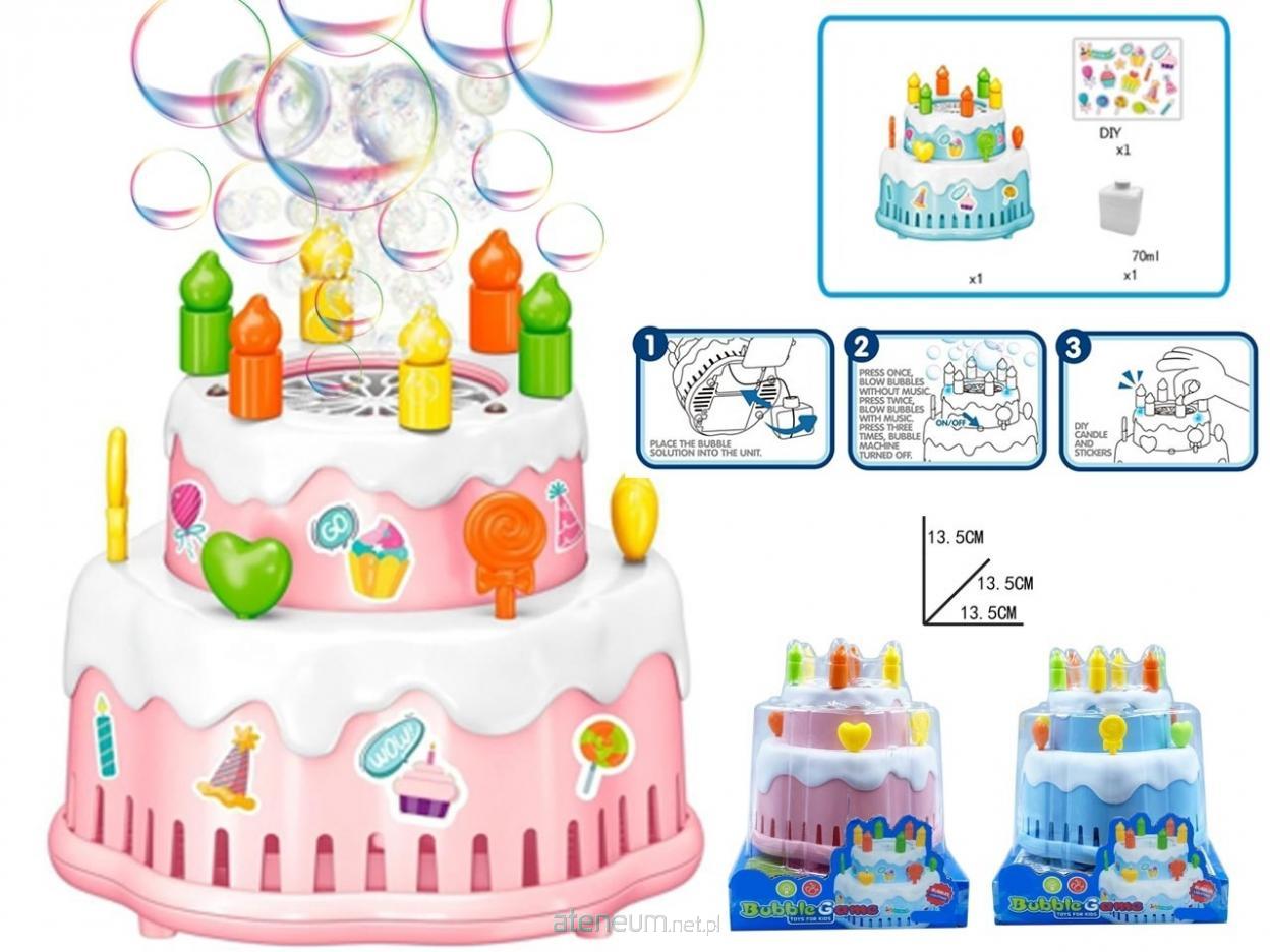 Kolorowa maszynka do baniek w kształcie urodzinowego tortu to wyjątkowa atrakcja dla dzieci. Po uruchomieniu urządzenie wytwarza mnóstwo baniek mydlanych, a świecące "świeczki" oraz wesoła muzyka tworzą efekt prawdziwego przyjęcia. Zestaw zawiera elementy DIY (naklejki do dekoracji) oraz pojemnik z płynem do baniek (70 ml), dzięki czemu dziecko może samodzielnie ozdobić swój tort. Idealna zabawka na urodziny, imprezy i zabawę w domu lub ogrodzie. Cechy produktu: automatyczne wytwarzanie baniek; efekty świetlne i muzyczne; możliwość dekorowania (DIY - naklejki); łatwa obsługa (wystarczy wlać płyn i włączyć); kolorowy, przyjazny design. Wymiary: Wysokość: ok. 13,5 cm; Szerokość: ok. 13,5 cm; Głębokość: ok. 13,5 cm. W zestawie: wytwornica baniek w kształcie tortu; płyn do baniek 70 ml; arkusz naklejek DIY. Produkt przeznaczony dla dzieci powyżej 3. roku życia.