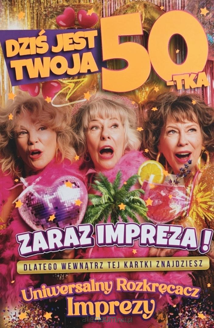 Pięćdziesiąte urodziny to doskonały pretekst, by zaszaleć w najlepszym towarzystwie i poczuć prawdziwy klimat glamour! Jeśli szukasz upominku, który idealnie oddaje atmosferę szalonej, kobiecej imprezy, ta śmieszna kartka na 50. urodziny dla kobiety to absolutny strzał w dziesiątkę. Karnet aż tętni pozytywną energią - przebojowe babki w różowych boa, błyszczące serce w stylu kuli disco, tropikalny drink i hasło "Dziś jest Twoja 50-tka. Zaraz Impreza!" sprawią, że Solenizantka od razu nabierze ochoty na świętowanie. To fantastyczny wybór dla mamy, żony, siostry czy najlepszej przyjaciółki!