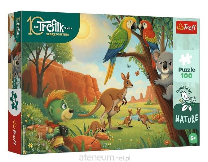 Koala i kangury to puzzle składające się z 100 elementów, zaprojektowane z myślą o małych fanach bajki Rodzina Treflików. Po ułożeniu układanki powstanie obrazek o wymiarach 410x275 mm.