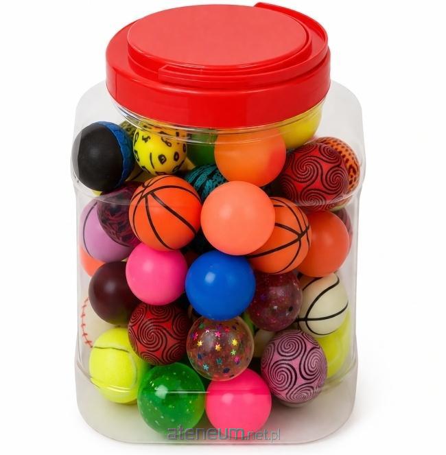 To, co wyróżnia ten model, to ogromna różnorodność wizualna. W bogatym miksie wzorów znajdziemy między innymi miniaturowe wersje piłek do koszykówki czy tenisa, hipnotyzujące spirale, przezroczyste sfery z zatopionymi wewnątrz kolorowymi gwiazdkami oraz intensywne, neonowe odcienie. Dzięki temu każda piłeczka jest małą niespodzianką, a kompletowanie własnego zestawu ulubionych wzorów staje się dla dzieci pasjonującym hobby.