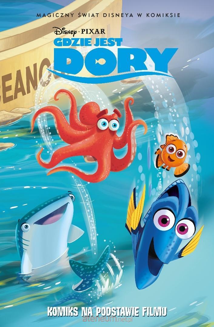 Poznaj bajecznie kolorową komiksową adaptację zachwycającej filmowej opowieści "Gdzie jest Dory". Dory to wesoła niebieska rybka, która ma kłopoty z pamięcią. Mieszka ze swoimi przyjaciółmi na Wielkiej Rafie Koralowej w Australii. Pewnego dnia przypomina sobie, że gdzieś czekają na nią rodzice. Postanawia ich odnaleźć. Jej jedyną wskazówką jest tajemnicza nazwa: Klejnot Zatoki Kalifornijskiej - miejsce znajdujące się na drugim końcu oceanu. Marlin i Nemo postanawiają towarzyszyć przyjaciółce w tej wyprawie. Czy trójce dzielnych rybek uda się odnaleźć rodziców Dory?