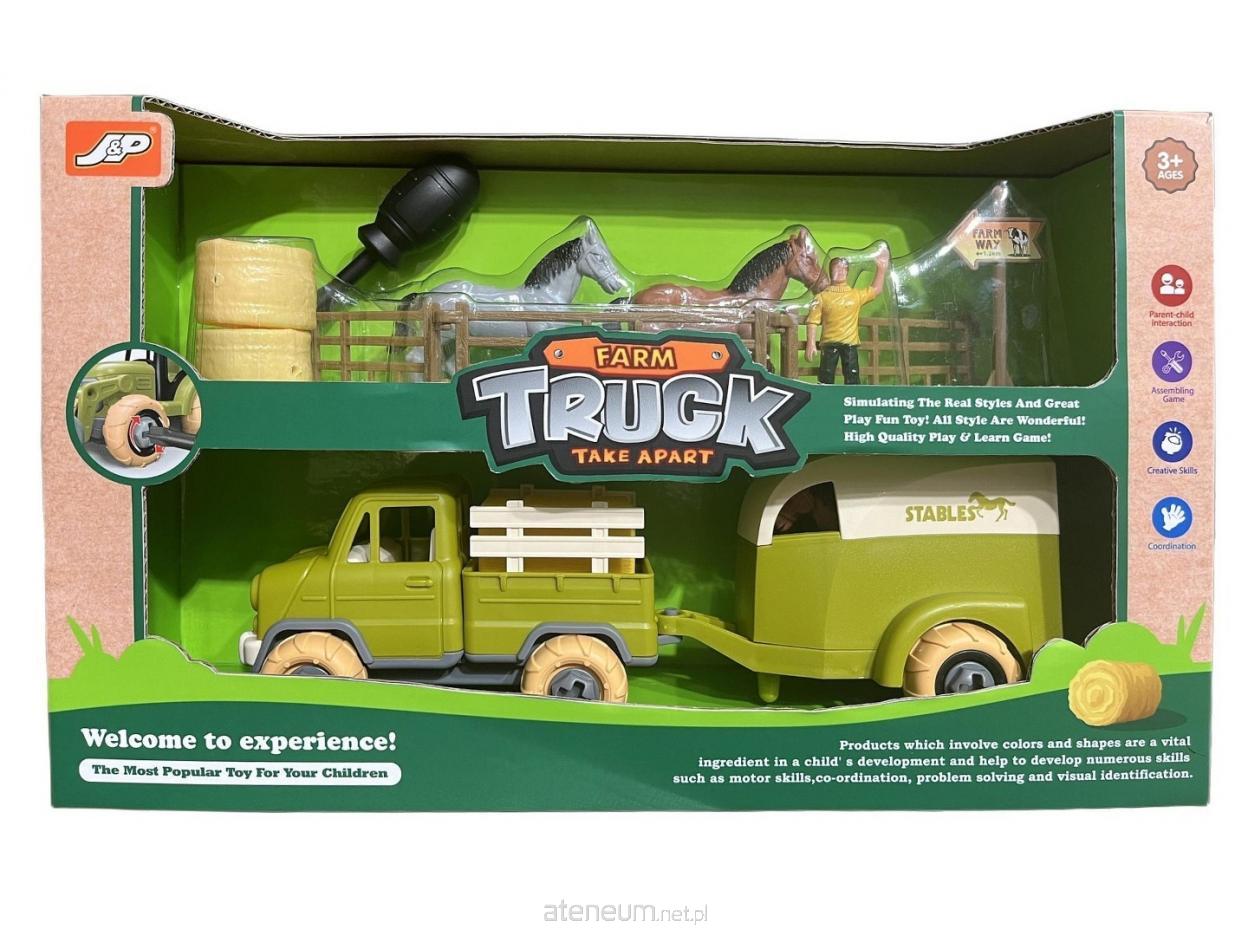 auto terenowe z przyczepą do przewozu koni, do skręcania, z przyczepą, farma, figurki, ze śrubokrętem; 34x21x10cm, W/B
