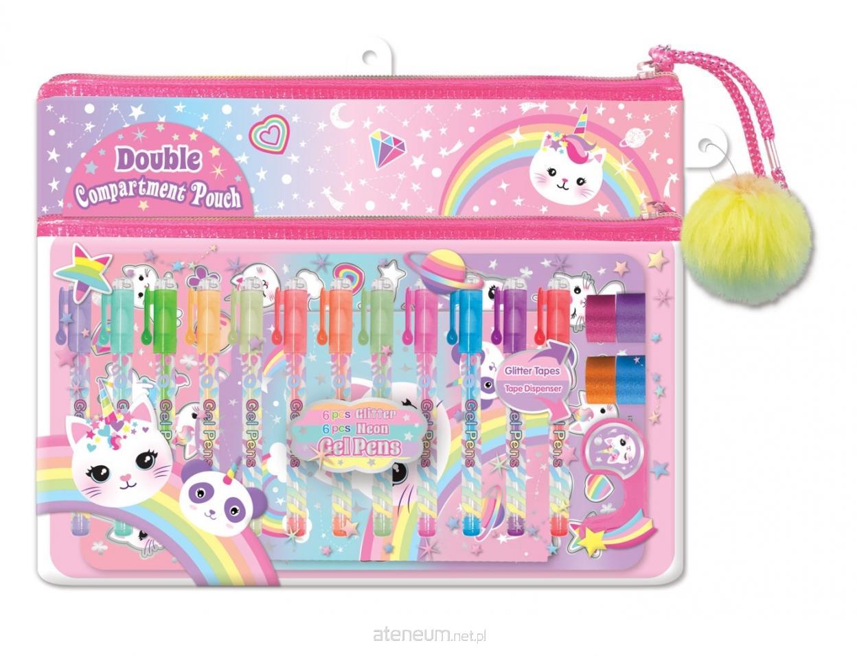 Zestaw zapakowany w przezroczystą saszetkę z dwoma przegródkami zamykanymi na zamek. Dodatkowo sznureczek i kolorowy pompon. W saszetce przesypują się holograficzne mini-ozdoby dla dodatkowego efektu. Wiek: 5+
