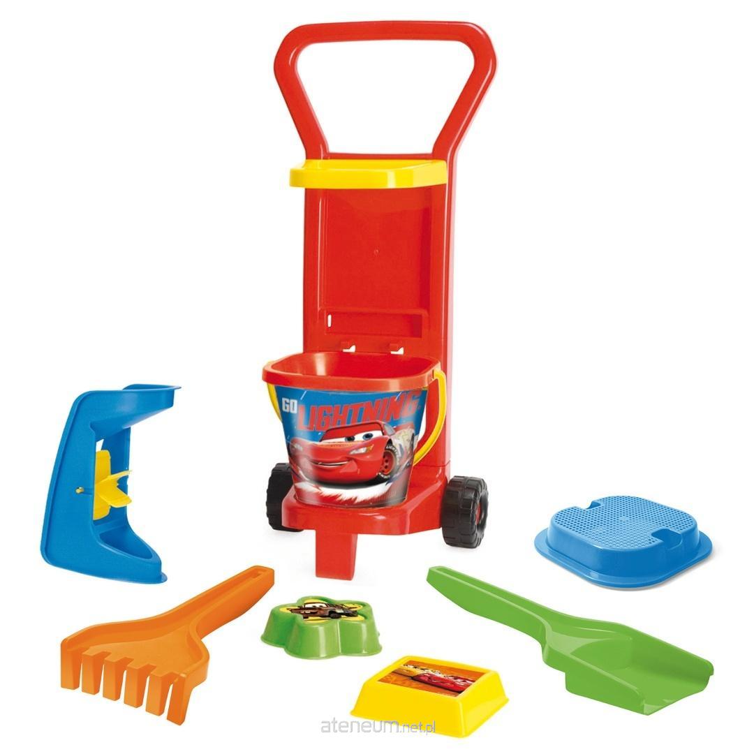 Wózek z kompletem letnim Cars to niezbędnik każdego małego turysty. Zestaw zabawek umieszczony jest w praktycznym wózku, który ułatwia transport i pomaga utrzymać porządek po zakończonej zabawie. Jest lekki i wytrzymały, dzięki temu może towarzyszyć naszym milusińskim zarówno podczas wyjazdu na wakacje nad morze, czy też wyprawy do piaskownicy, parku czy ogrodu. Wózek na kółkach umożliwia przemieszczanie się z zabawkami w łatwy sposób nawet dla najmłodszych dzieci. Komplet zawiera wiaderko z sitkiem, łopatkę, grabki, młynek i dwie foremki. Zestaw daje możliwość nieograniczonej zabawy - tworzenia budowli z piasku, kopania tunelu, grabienia liści, muszelek czy przesiewania piasku. Na szczególną uwagę zasługuje młynek - wystarczy, że dziecko wsypie piasek lub wleje wodę, by wprawić w ruch maszynę. Zabawa z wykorzystaniem wózka rozwija kreatywność i wyobraźnię naszych pociech, wspiera rozwój ich umiejętności motorycznych, manualnych i koordynacji wzrokowo-ruchowej. Zapraszając rówieśników do wspólnej zabawy dziecko rozwija swoje kompetencje społeczne, umiejętności interpersonalne oraz uczy się współdziałania. Wszystkie elementy zestawu wykonane są z atestowanego, najwyższej jakości, bezpiecznego dla dzieci tworzywa sztucznego. Całość jest starannie wykończona i wytrzymała, a grafika wykonana metodą IML jest odporna na działanie wody i słońca. To pozwoli zabawkom wyglądać jak nowe przez wiele sezonów.