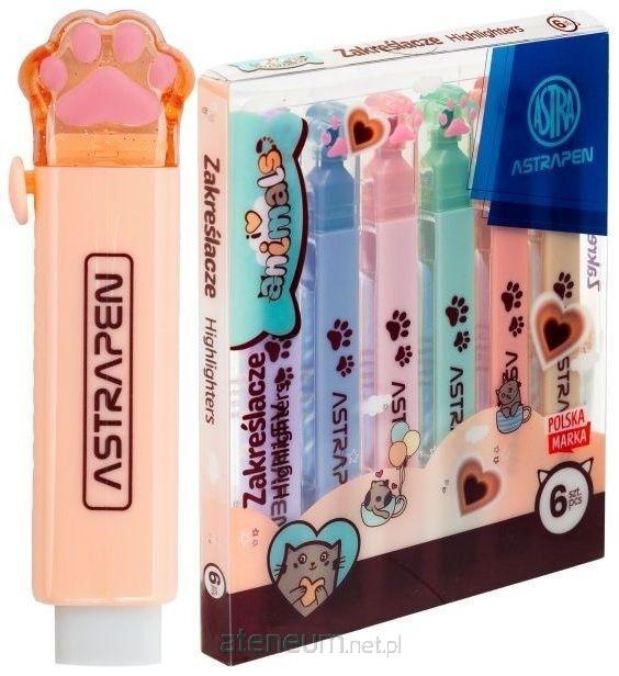 Zestaw sześciu mini zakreślaczy z zabawnymi łapkami.