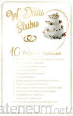 Karnet ślubny z kopertą, złocony, tekst życzeń w środku.