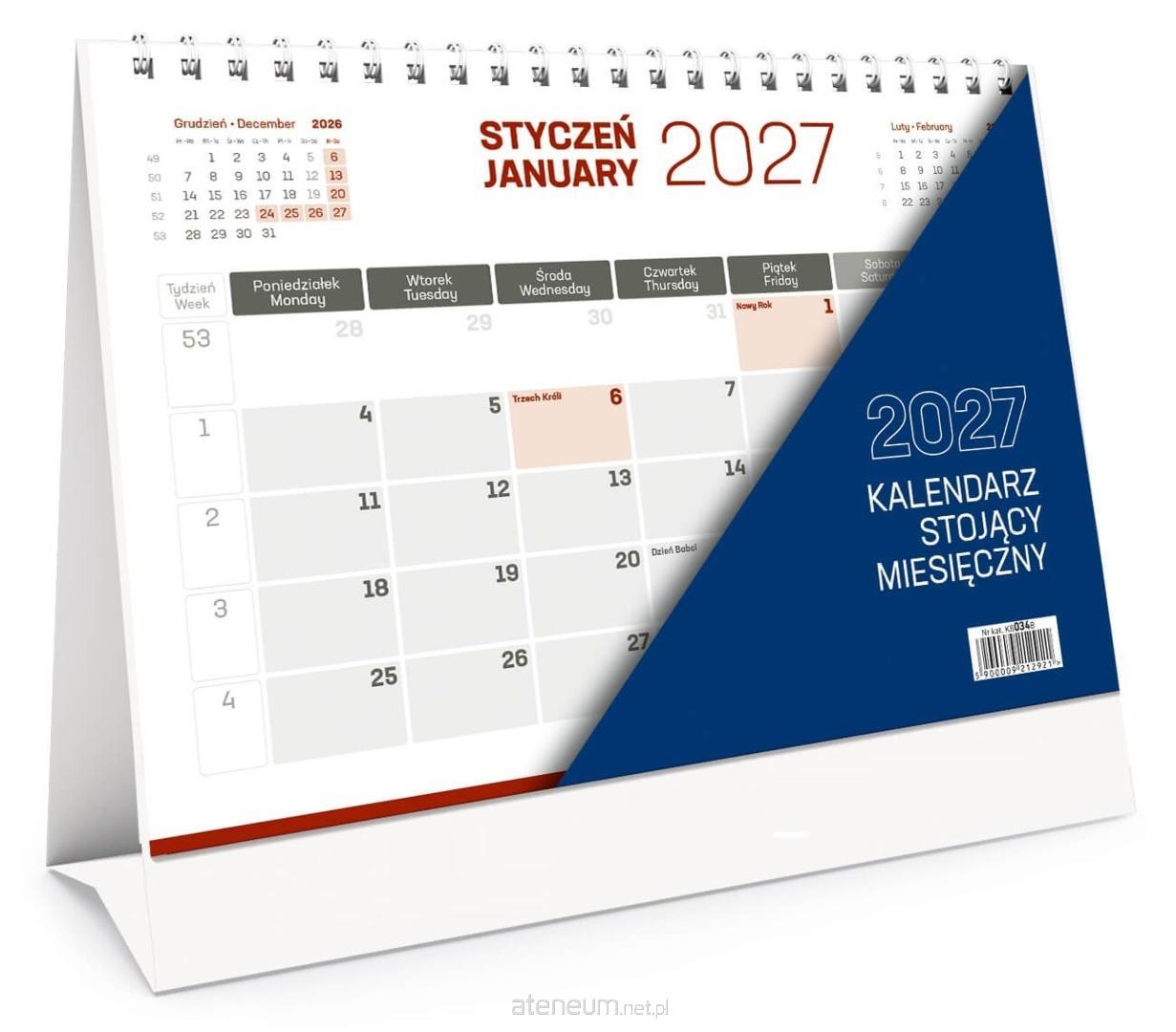 Wygodny kalendarz stojący na biurko z przejrzystym kalendarium w układzie miesięcznym, z miejscem do notowania każdego dnia miesiąca. W górnej części kalendarium podgląd poprzedniego i kolejnego miesiąca. W dolnej części kartonowej podstawki istnieje możliwość wykonania nadruku reklamowego na obszarze o wymiarach 220 x 13 mm. Istnieje możliwość założenia indywidualnej okładki. W kalendarzu zaznaczone święta.
