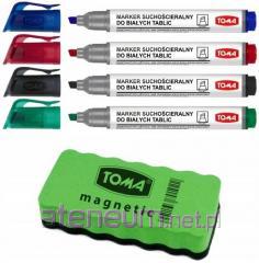 Marker do tablic białych 4 kolory + gąbka TOMA