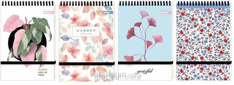 Fascynujący design - Okładka każdego notatnika ozdobiona jest modną grafiką z serii Flower, co nadaje mu unikalnego charakteru. Czarna spirala dodaje notatnikom eleganckiego wykończenia.
