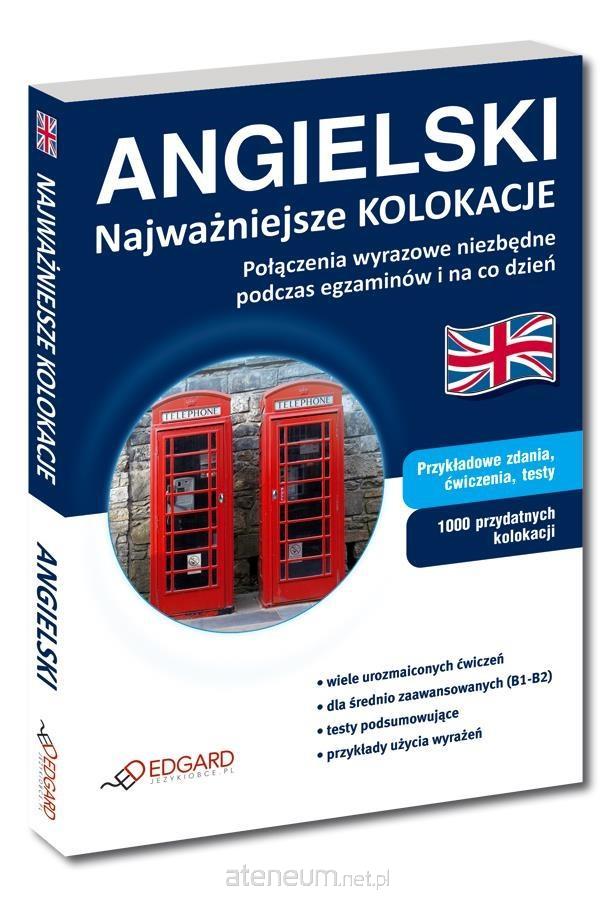 Angielski Najważniejsze kolokacje: - nauka 1000 przydatnych kolokacji - przykłady użycia wyrażeń w zdaniach - aktualny, współczesny język - ponad 100 urozmaiconych ćwiczeń - testy podsumowujące Angielski Najważniejsze kolokacje Przykładowe zdania, ćwiczenia, testy umożliwia poznanie tysiąca kolokacji, czyli wyrażeń czasownikowych, rzeczownikowych i przymiotnikowych, niezbędnych do swobodnego porozumiewania się w języku angielskim. Praca z książką bazuje na metodzie aktywnej nauki w oparciu o zestaw 100 różnorodnych ćwiczeń. Książka jest adresowana do osób posługujących się angielskim na poziomie średnio zaawansowanym (B1-B2 wg klasyfikacji Rady Europy), które chcą poszerzyć lub urozmaicić swój zasób słownictwa oraz posługiwać się żywym, współczesnym językiem. Szczególnie polecana jest osobom przygotowującym się do matury rozszerzonej z języka angielskiego oraz do FCE, ponieważ znajomość kolokacji jest niezbędna podczas pisemnej oraz ustnej części tych egzaminów. Kolokacje uporządkowano w 30 rozdziałach tematycznych. Znaczenie każdego wyrażenia zostało zilustrowane zdaniem, co ułatwia jego zapamiętanie i jest pomocne podczas powtórek przed egzaminami czy testami. Wszystkie wyrażenia umieszczone w książce zostały przetłumaczone na język polski. Podręcznik zawiera 100 urozmaiconych ćwiczeń, które uczą praktycznego i swobodnego posługiwania się kolokacjami. Na końcu każdego rozdziału znajduje się kilka rodzajów ćwiczeń, m.in. uzupełnianie zdań i tworzenie kolokacji przez łączenie wyrazów w pary. Podsumowaniem nauki są znajdujące się na końcu książki testy przekrojowe sprawdzające znajomość kolokacji.